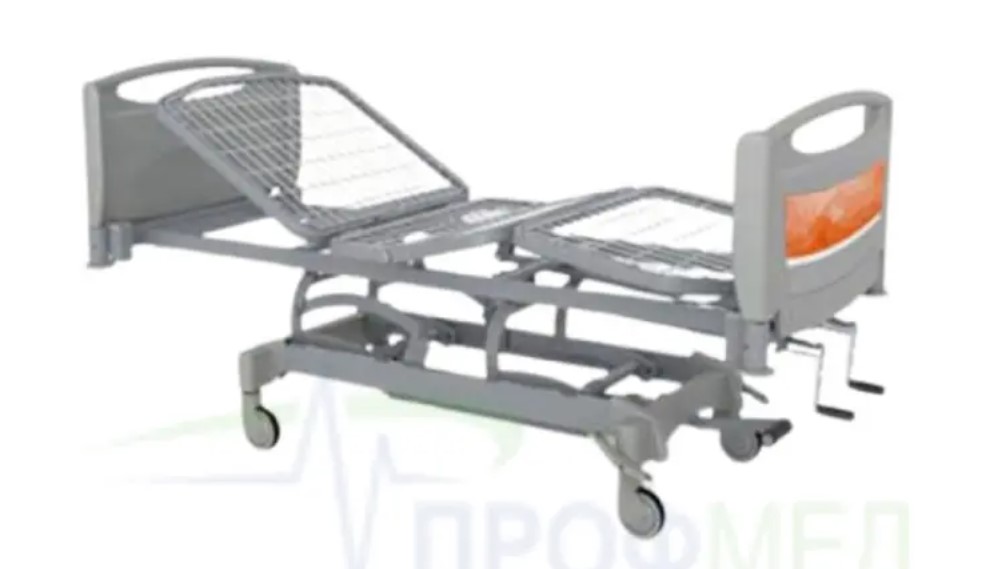 Кровать Theorema 4х секционная с изменяемой высотой ложа гидравлическим приводом, спинная и бедренная секции – винтовые ручки, ножная секция – зубчатая рейка, тренделенбург/антитренделенбург.
